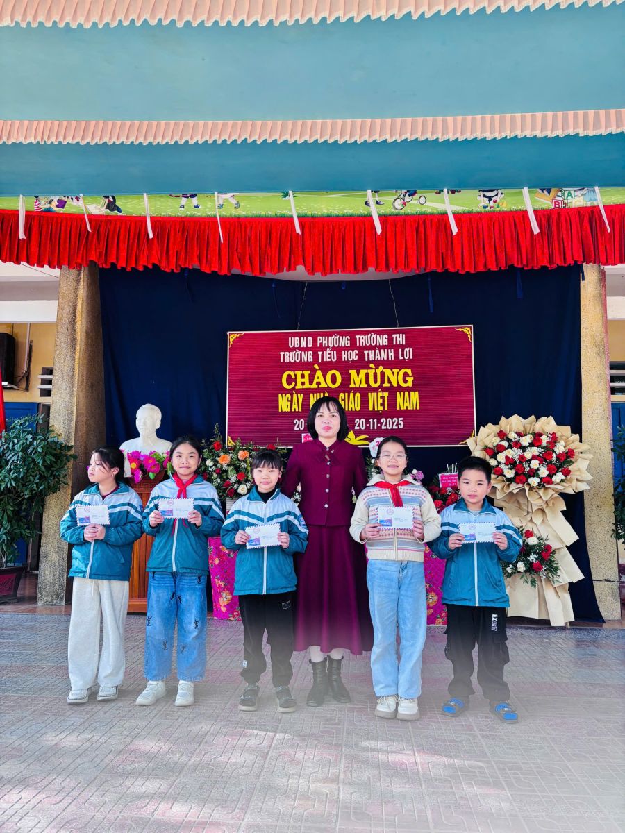 Sáng ngày 20/11/2025. Thầy và trò trường Tiểu học Thành Lợi long trọng tổ chức Kỉ niệm 43 năm Ngày Nhà giáo Việt Nam 20/11/1982 -20/11/2025. Trao thưởng cho các tập thể lớp đạt giải trong các phong trào Thể dục thể thao, văn nghệ chào mừng ngày Nhà giáo Việt Nam 20/11.